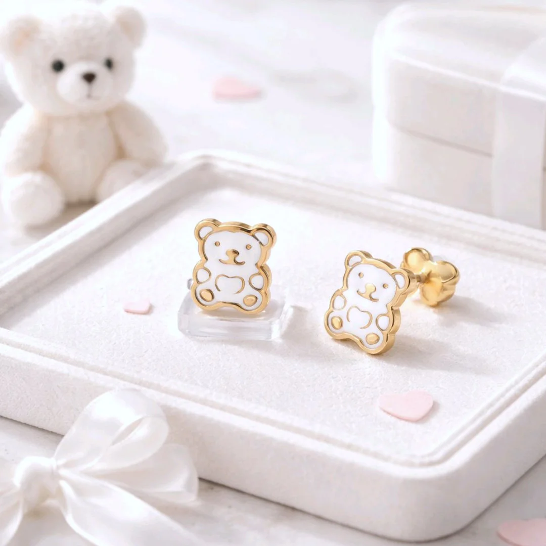 Boucles d’oreilles acier enfant : un bijou ourson mignon et sécurisé
