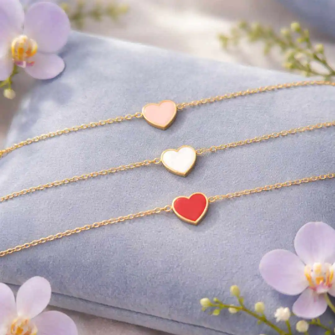 Ce cœur délicatement posé au centre d’une fine chaîne dorée en acier inoxydable saura charmer toutes les petites filles en quête d’un bracelet enfant cœur rose à la fois mignon et symbolique.