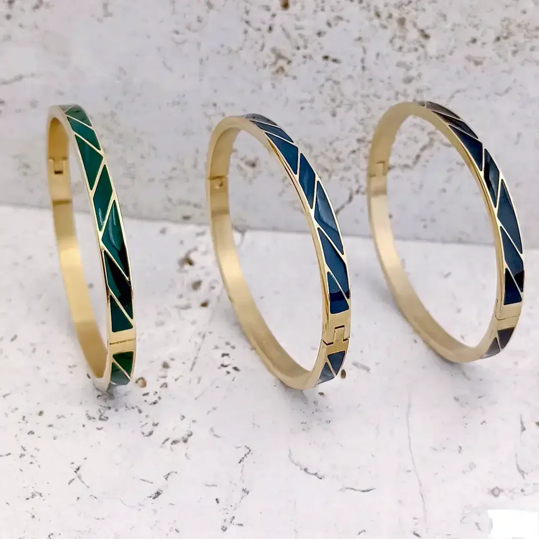 Collection bracelets joncs fermés pour femme en acier émaillé coloréBracelet jonc en acier inoxydable émaillé coloré triangle