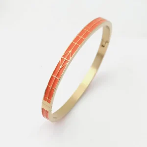 Bracelet jonc en acier inoxydable doré avec émail couloré sur tout le tour. Un bijou élégant et tendance, idéal pour sublimer vos tenues.