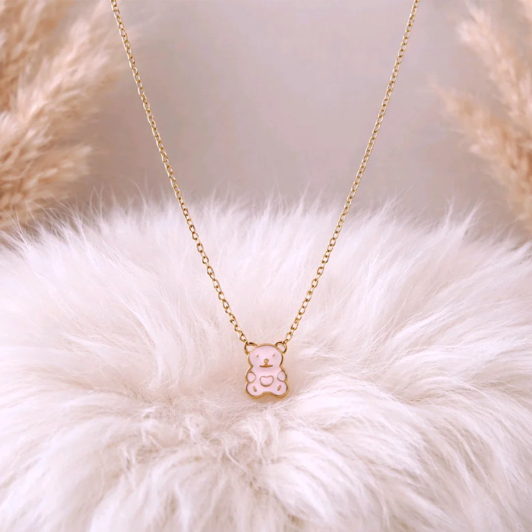 Collier enfant ourson en acier inoxydable hypoallergénique – pendentif nounours