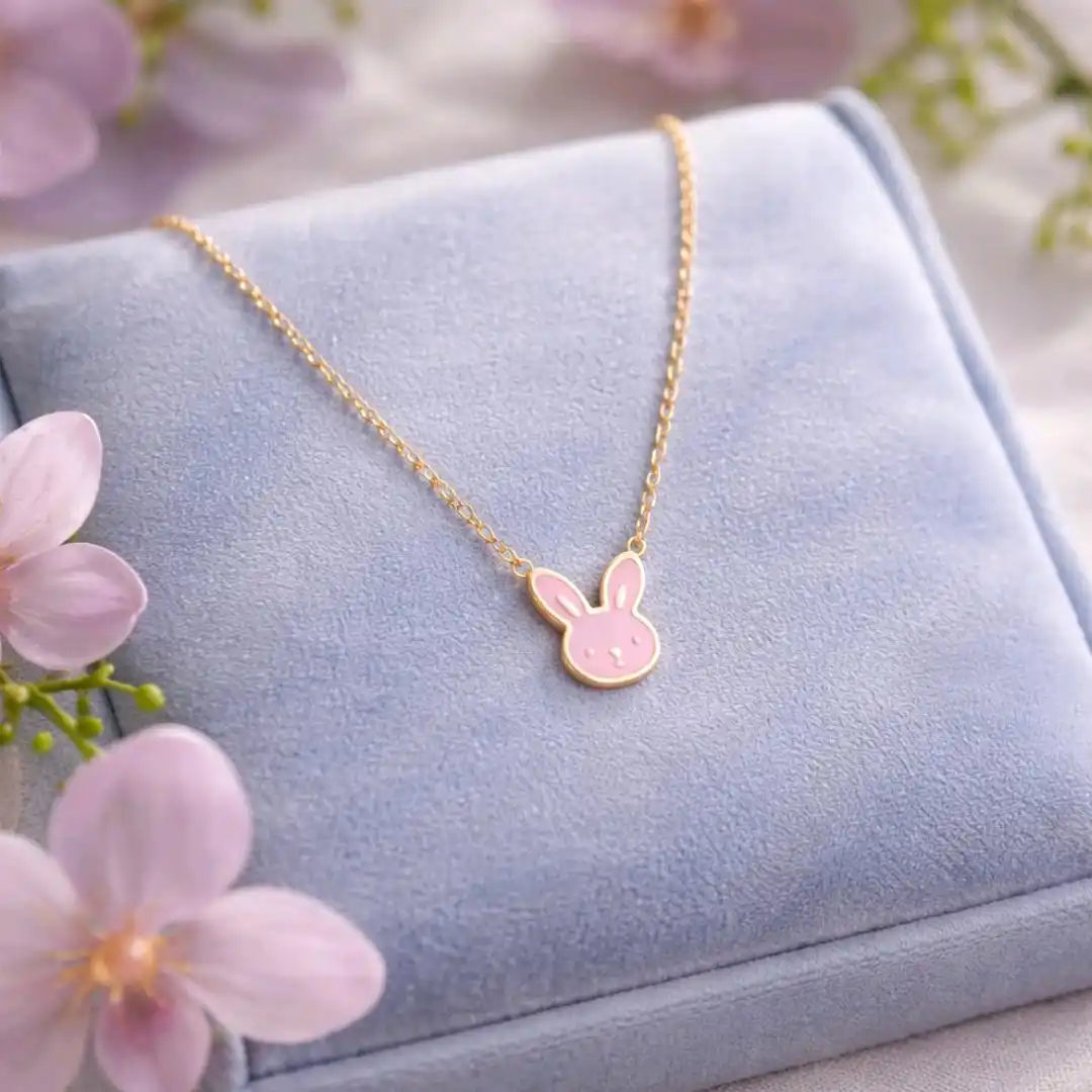 collier enfant acier inoxydable lapin émaille rose filleCollier enfant acier inoxydable lapin émaillé rose doré – bijou fille résistant à l’eau