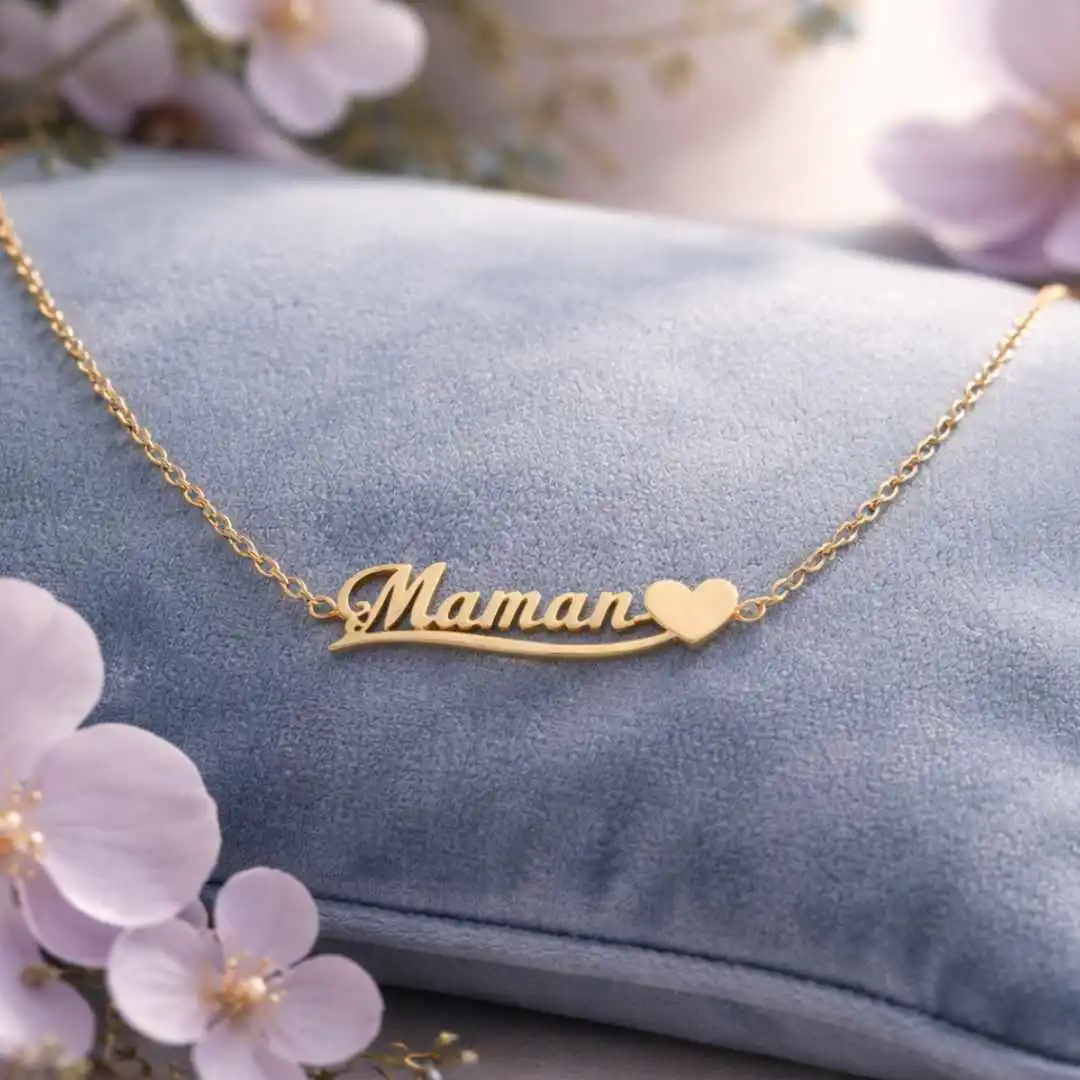 Ce collier raffiné rend un hommage tout en délicatesse à la plus belle des personnes : Maman. En acier inoxydable doré, il arbore une fine chaîne accompagnée d’un pendentif élégant représentant le mot « Maman », rehaussé d’un petit cœur délicatement gravé. Une pièce à la fois émotive, moderne et intemporelle.